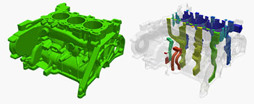 Geo-Designer中,包含了基於網格層面的布耳運算功能,能過非常輕易地對零件進行布耳運算,比如抽取砂芯,這讓繁瑣的工作變得異常簡單。同時抽取的砂芯表面幾何還可以通過STL格式進行輸出。